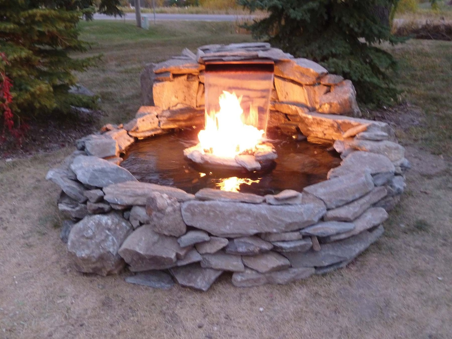 Fire Pit And Fountain Combo - This fire pit table adds warmth and contemporary style to any outdoor living space.. Fogging fountain with color changing led lights in the summer, fire pit when it's cold in the winter. None of these pins capture exactly what i'm looking for, but will be good inspiration once we are in the construction phase. Never use gasoline as a firestarter. Thinking of something that will drastically change the appearance of your backyard? This ensures that your fire will the outland living propane fire pit table is both stylish and functional.