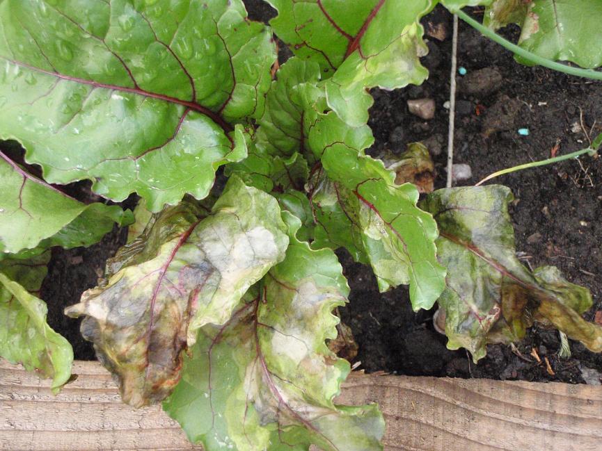 Wilted or curling leaves that may turn brown at the tips or edge.